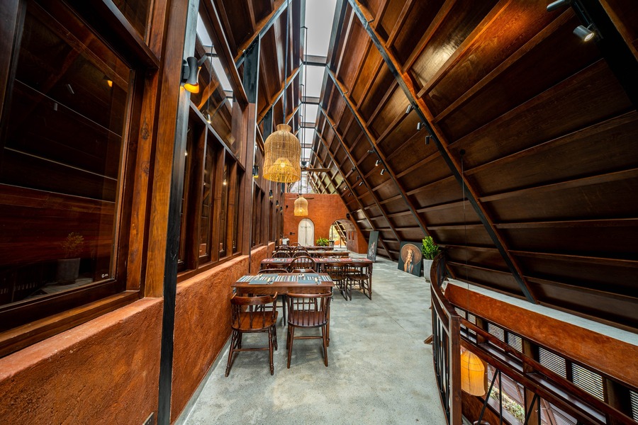 Không gian là yếu tố then chốt tạo nên trải nghiệm “sang trọng” tại Nhà hàng Ma de Bistro. Thiết kế của nhà hàng là sự kết hợp hài hòa giữa kiến trúc châu Âu cổ điển và vật liệu địa phương, chủ yếu là gỗ thông và đá. Tông màu trầm ấm, ánh đèn vàng dịu nhẹ cùng với lò sưởi giả cổ tạo nên một bầu không khí cực kỳ ấm cúng, đặc biệt phù hợp với thời tiết se lạnh của Măng Đen.