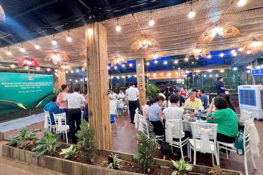 Không gian rộng rãi giúp nhà hàng Mái Lá Buôn Mê Thuột phù hợp với nhiều kiểu tụ họp khác nhau. Đi cùng gia đình thì thoải mái, đi nhóm bạn đông người cũng không lo chật chội. Nếu cần tiếp khách hay gặp gỡ thân mật, không gian ở đây đủ riêng tư để câu chuyện diễn ra tự nhiên, không bị quá ồn ào.